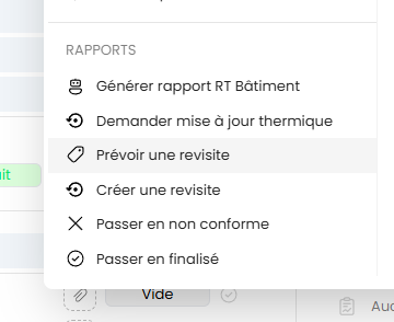 Dans certains cas, une revisite peut être nécessaire après un premier contrôle (non-conformité, complément de vérification, etc.). Hexagone vous permet de prévoir ou créer une revisite directement depuis la page du dossier, en quelques clics.