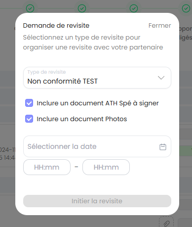 Choisissez un type de revisite dans le menu déroulant (ex. : "Non conformité TEST").